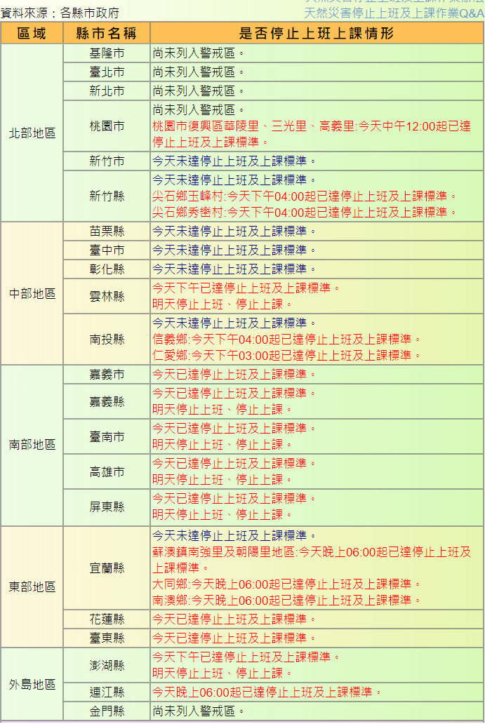 ⬅ 回看原文: [行政院] 停班停課公告網頁 (颱風假)