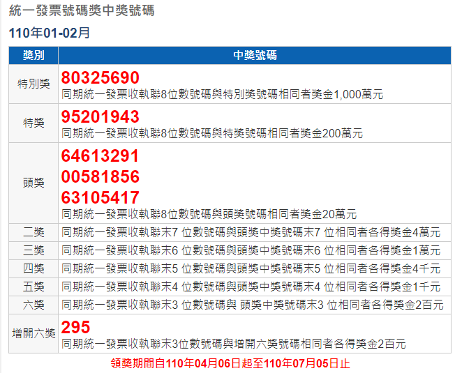 ⬅ 回看原文: [統一發票] 中獎號碼 115 年 1、2月