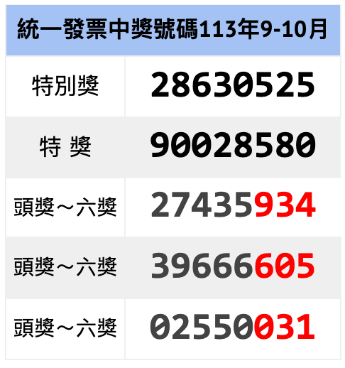 ⬅ 回看原文: [統一發票] 中獎號碼 114 年 9、10月