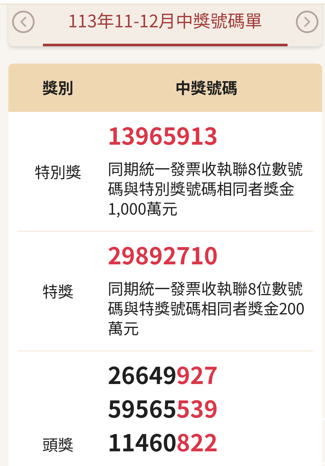⬅ 回看原文: [統一發票] 中獎號碼 114 年 9、10月