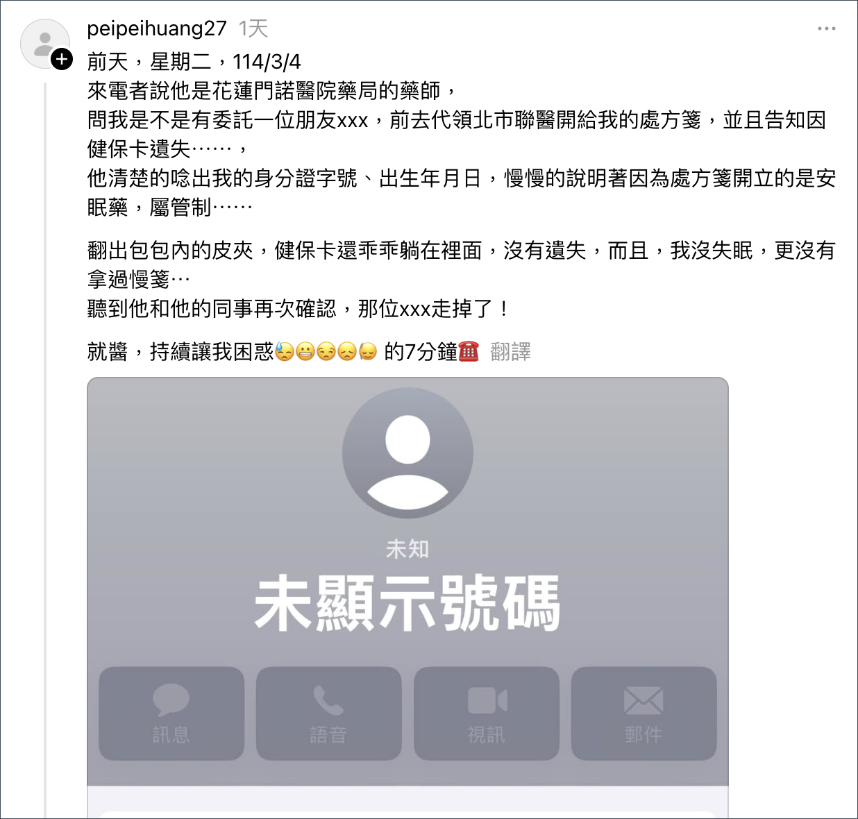注意!醫院打電話說有人拿你雙證件領「管制藥品」、懷疑涉及不法 ← 這是詐騙