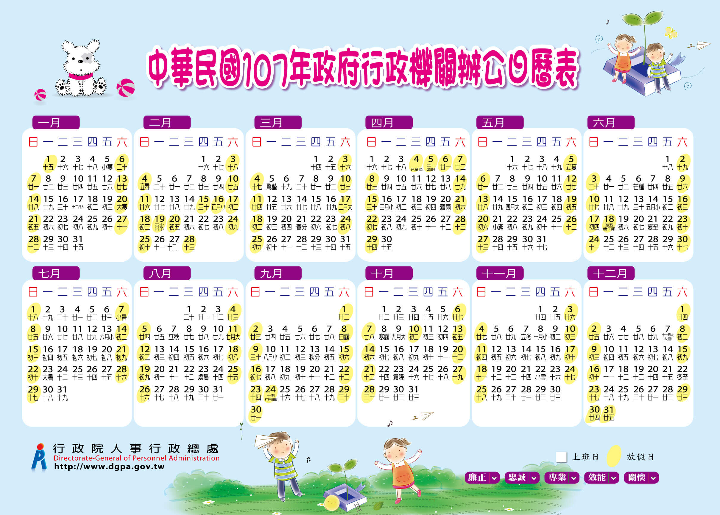 檔名: 107年辦公日曆表-4,    尺寸: 2418 × 1732 ,    日期:
