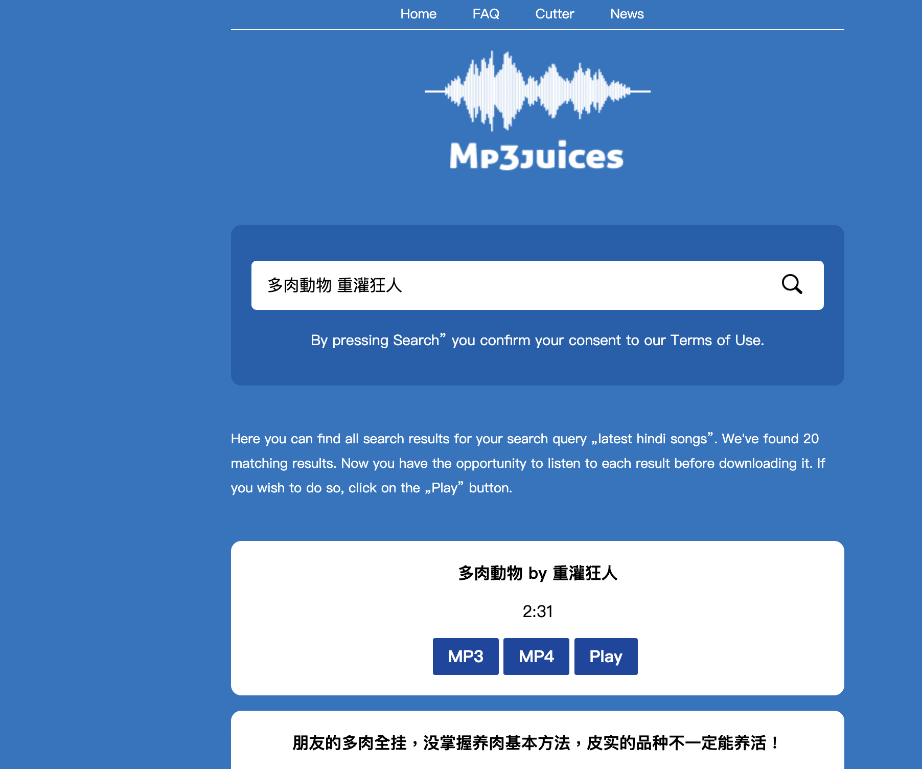 要注意的是,MP3Juice 網站的廣告有點多,會自動開啟一些奇怪的連結,要小心。