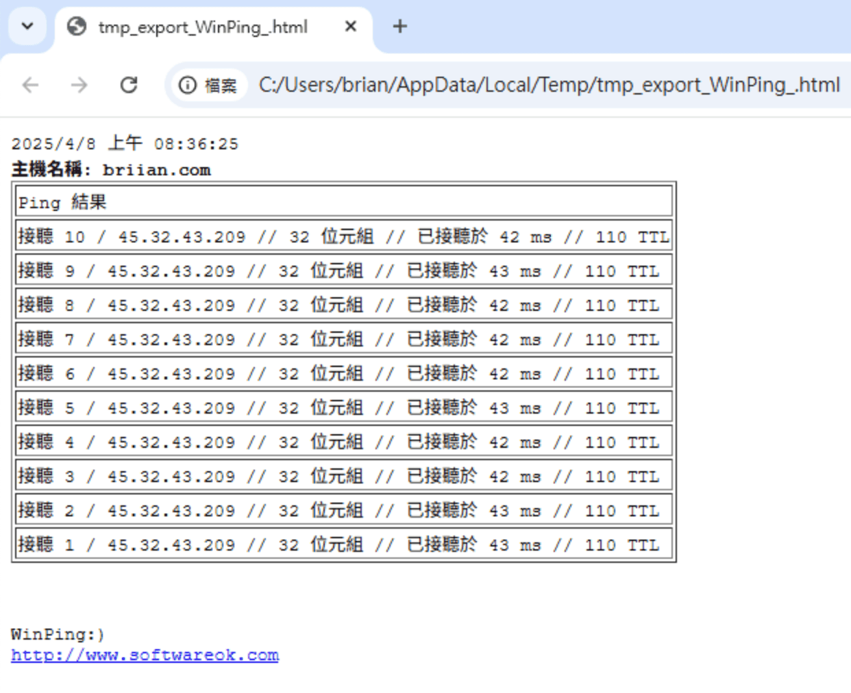 - 軟體名稱:WinPing
