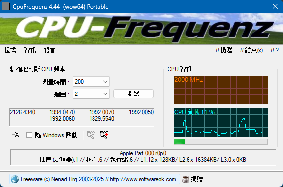 CpuFrequenz 檢測 CPU 即時負載、運作頻率