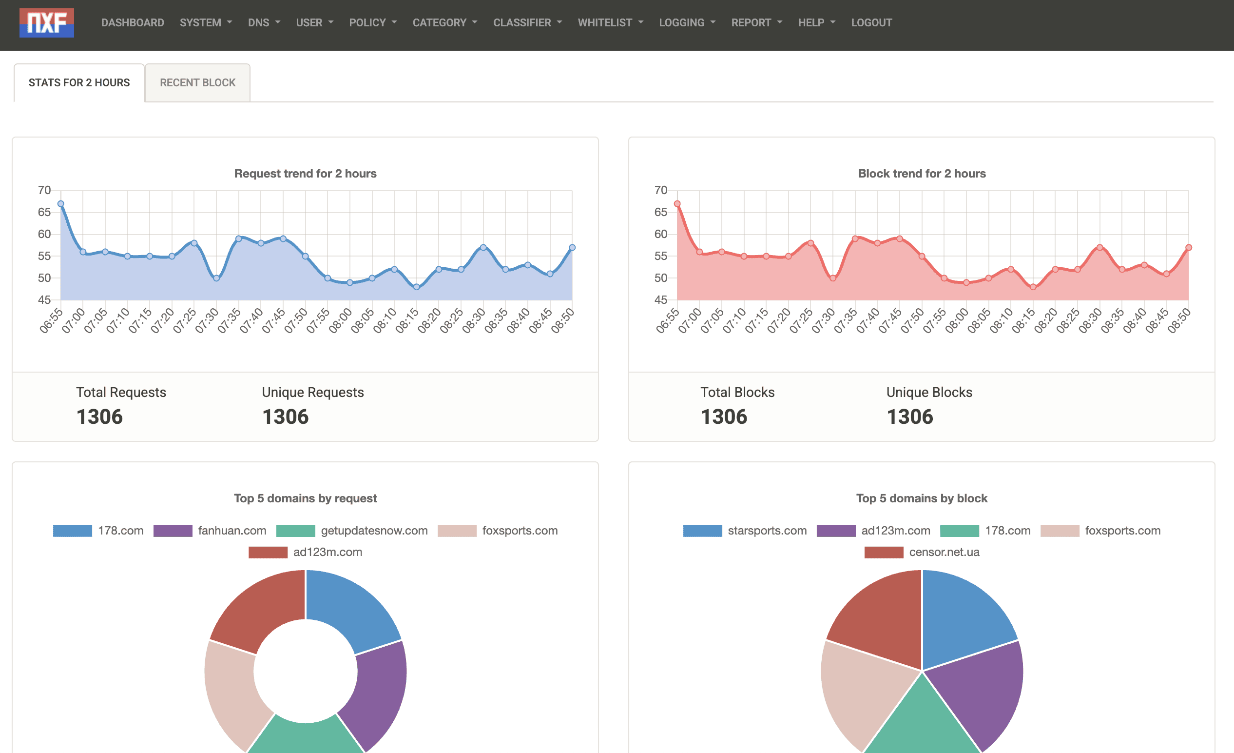 NxFilter 提供 DNS 快取機制,亦可透過多種認證方式來控管不同類型的使用者,還有相當完整詳細的報表與日誌可供檢查與管理,甚至還有頻寬限制、平衡負載與防釣魚與惡意網站… 等各式控管功能,相當方便。