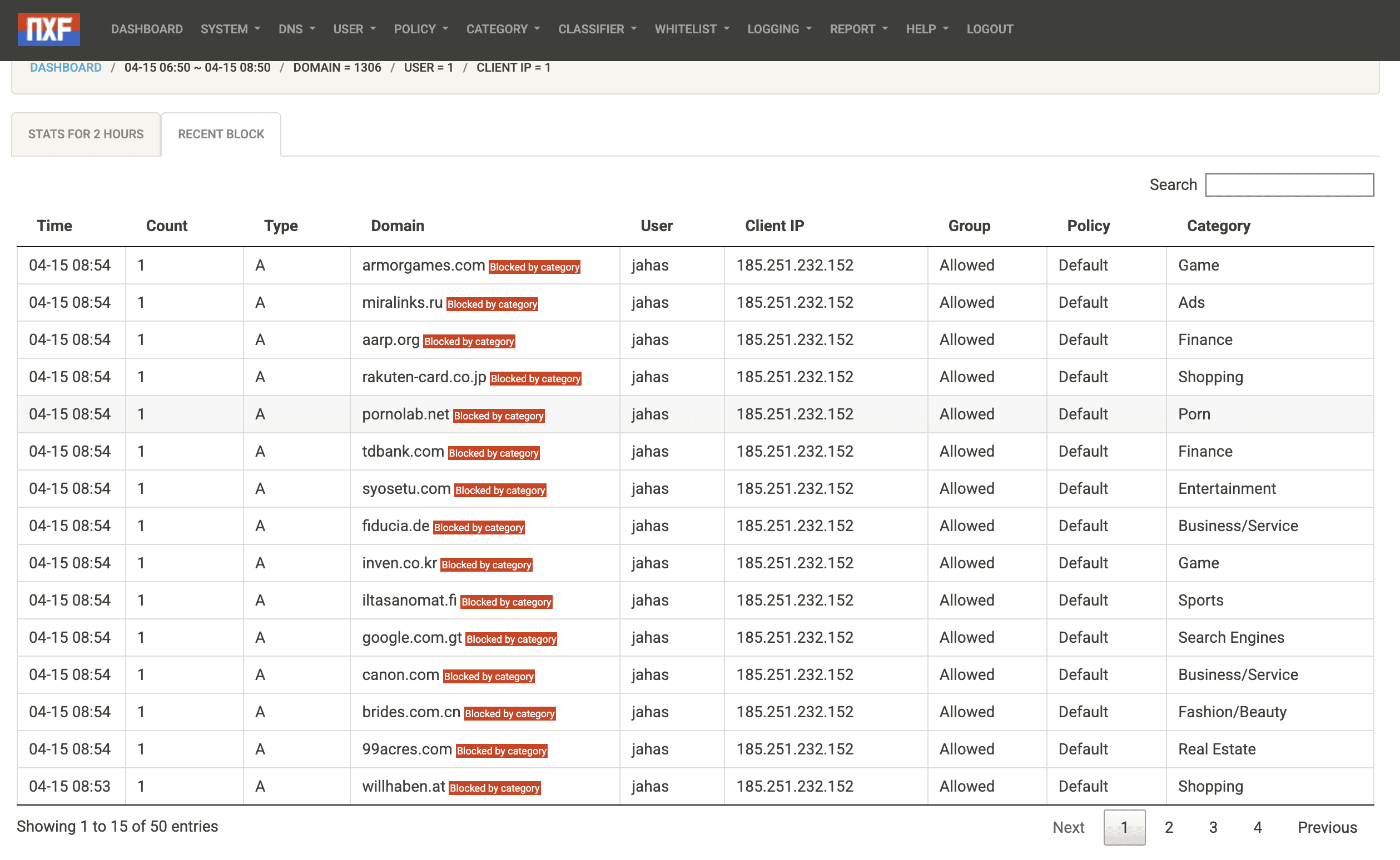 NxFilter 是一個免費的 DNS 過濾、監控軟體,可透過IP與網址來檢查使用者上什麼網站、是不是有害的病毒、釣魚網站或其他成人網站、社群網站或遊戲…等,也可透過黑名單、白名單等方式來精準控制使用者能不能開啟某些類型的網站,避免使用者在不對的時間、做不對的事。