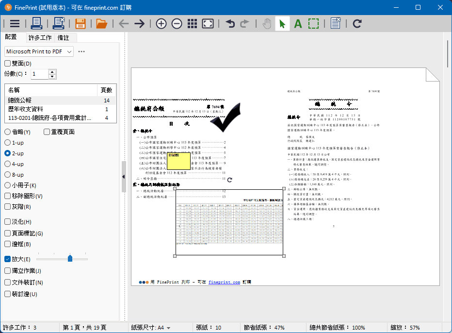 FinePrint 印表機省錢神器:多檔多頁合併列印、去圖刪頁、淡化降灰階
