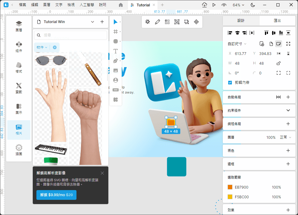 Lunacy 是一個質感相當不錯且功能也相當強大的繪圖軟體,除了一般美術設計與專業繪圖軟體該有的功能都有之外,還獨家提供了上百萬個ICON圖示、插圖與各類照片… 等免費資源,讓我們不用到處找圖庫,就能直接在 Lunacy 軟體中快速瀏覽、插入你要設計的海報或作品中。