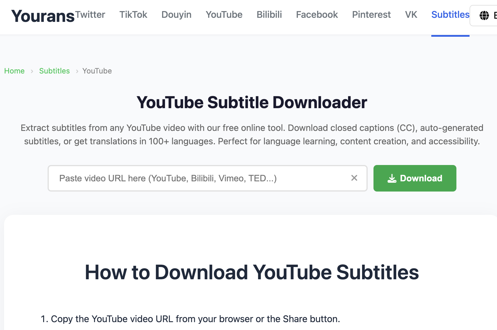 免裝軟體,一鍵下載 YouTube 影片字幕