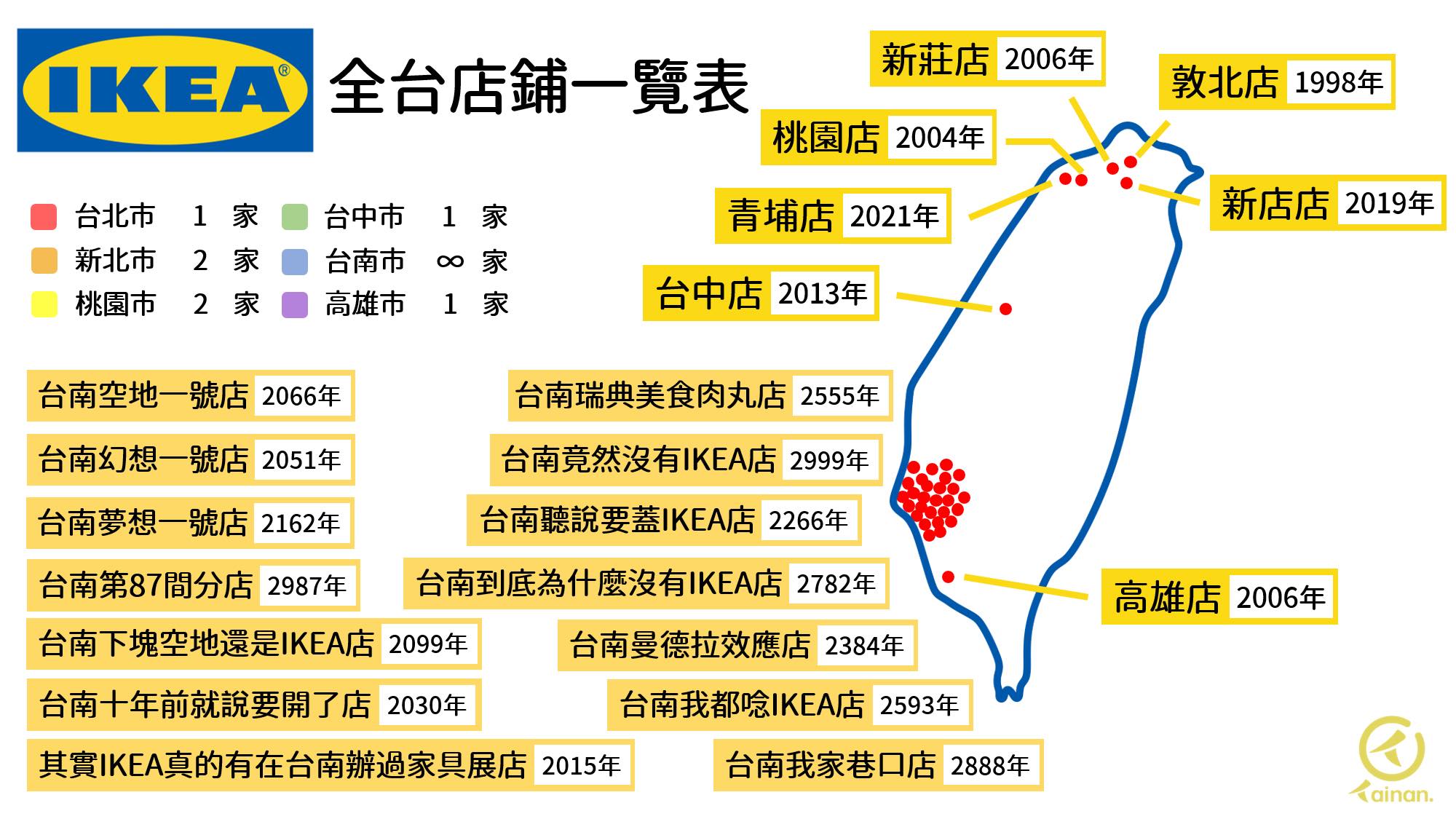 統計結果,台南 IKEA 的分店家數、分店密度全台(全球)最高!